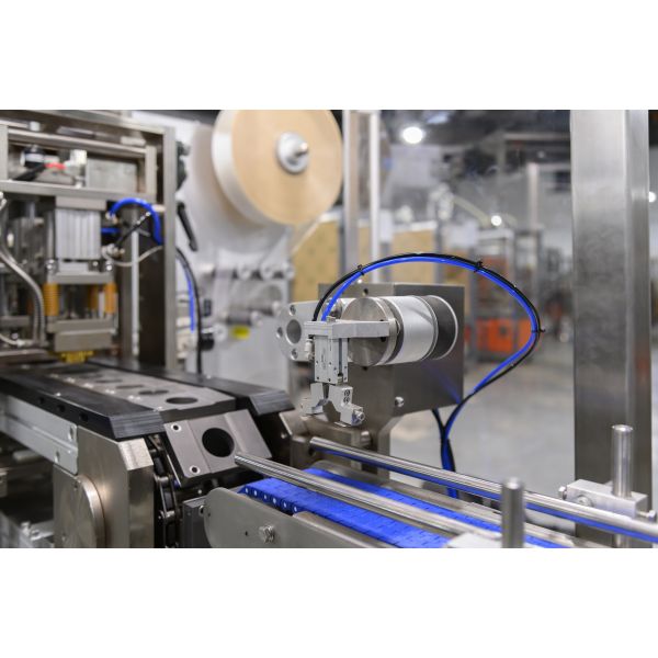 Roll film cutting and sealing system with high-precision fine tooth cylinder blade can realize online cutting and sealing at the same time. The sealing deviation is within 0.1mm. With the identification mark system, servo motor drives roll film expansion and dragging precisely.